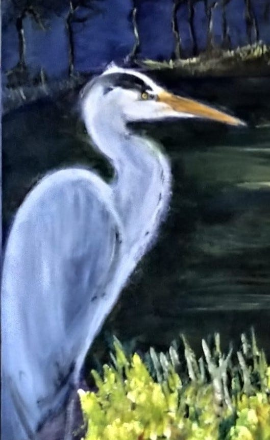 What a beautiful and moving story. Thank you for being so courageous and vulnerable to write and share her - your body's disintegration, your time in the dark, your herd's deaths, and the heron. The heron!